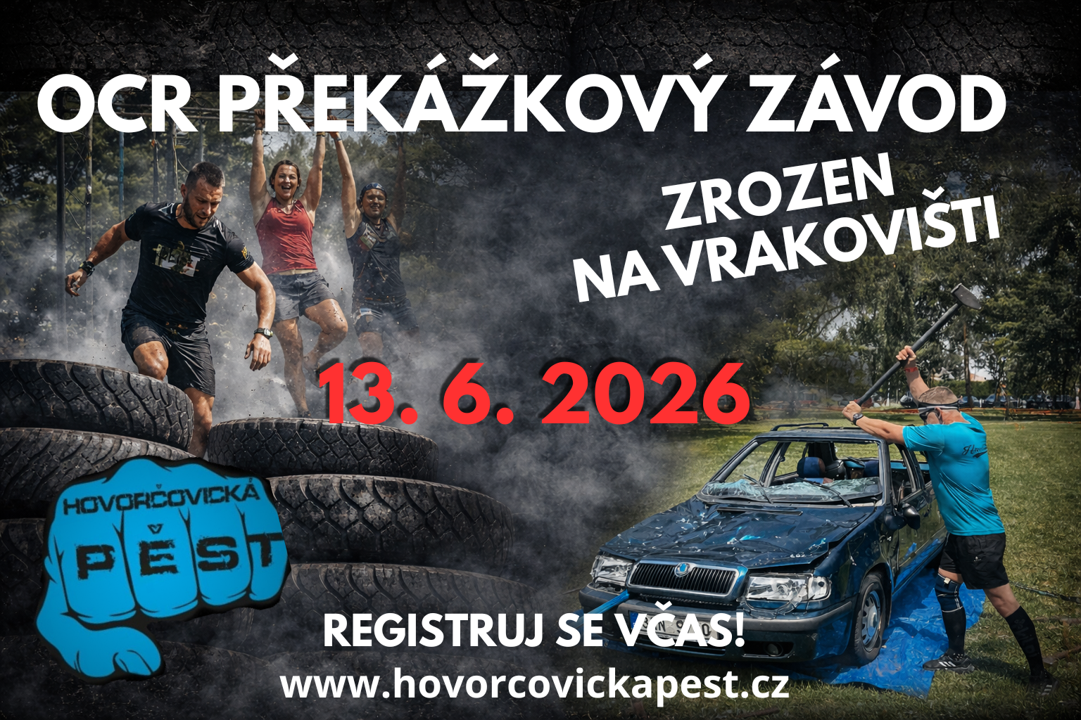 Závodníci se můžou těšit na klasické překážky, jako jsou stěny, šplh a jiné, ale Hovorčovická pěst je závod, který se zrodil na VRAKOVIŠTI, takže PNEUMATIKY, VOLANTY, RÁFKY a AUTOVRAKY, to je NAŠE!